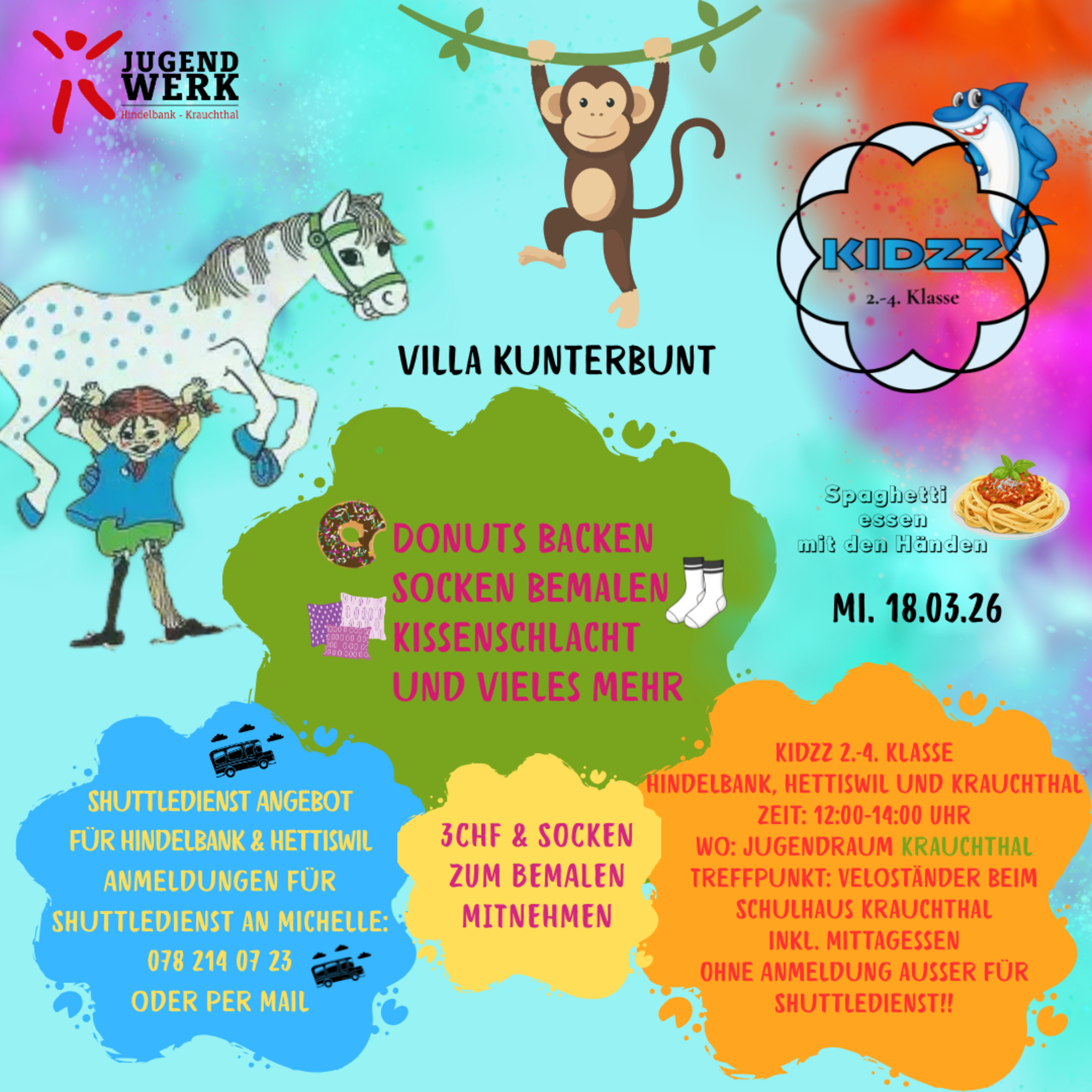 Für die Kinderprogramme "KIDZZ" und "TeensUp" bietet das Jugendwerk einen Shutteldienst an. Für mehr Infos können Sie den jeweiligen Halbjahresflyer downloaden oder auf den Button klicken.
